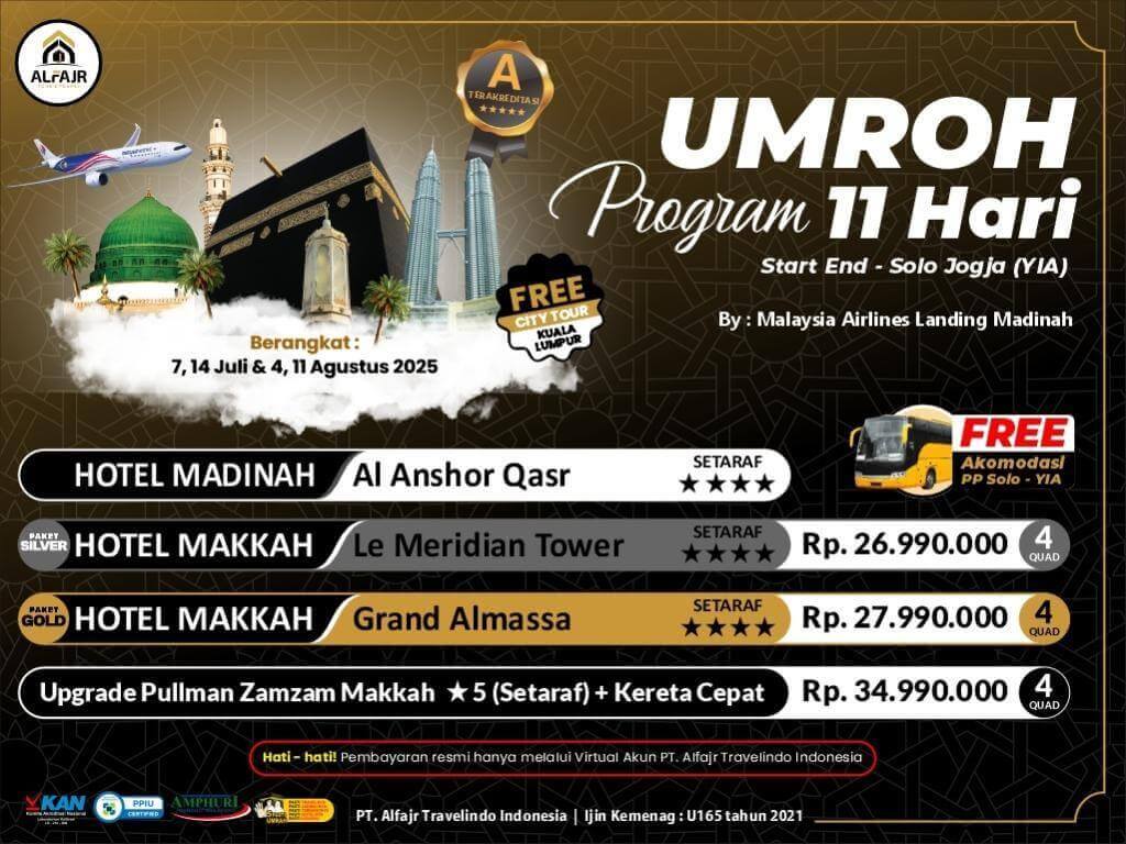 PAKET UMROH 11 AGUSTUS 2025 GOLD 11 HARI BY MALAYSIA AIRLINE