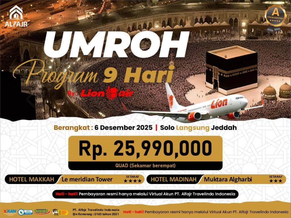 PAKET UMROH 06 DESEMBER 2025 BY LION AIR 9D START SOLO