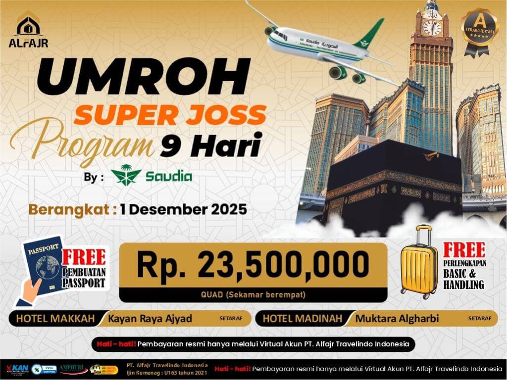 PAKET UMROH 1 DESEMBER 2025 SV 9 HARI SUPER JOSS